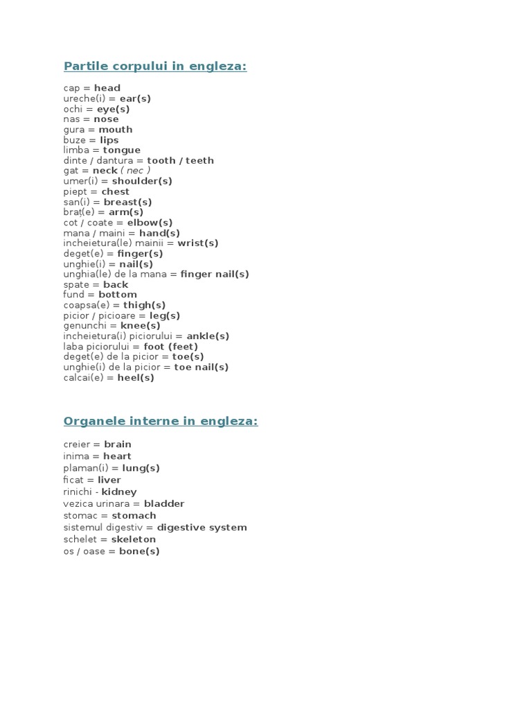 Partile corpului in limba engleza body parts gratuit online propozitii si fraze uzuale de baza pentru incepatori copii fara profesor tweet. Head cap torso trunchi members membre hair păr eye ochi ear ureche nose nas. Iată câteva nume în engleză pentru părțile corpului uman la fel și câteva cuvinte pentru diferitele simțuri. Câștigă puncte și ajută ți echipa să i învingă pe crocobeți.