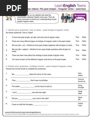 Gs Past Simple Irregular Exercises 0 English Grammar Verb