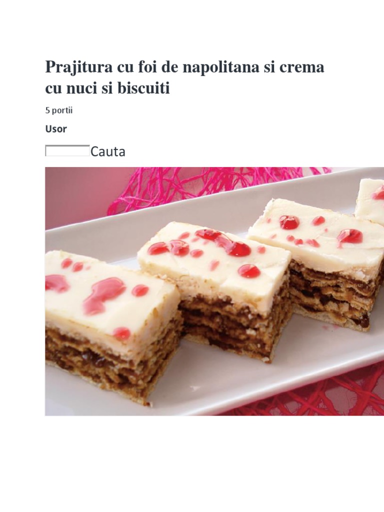 Prajitura Cu Foi De Napolitana Si Crema Cu Nuci Si Biscuiti Retete Practice