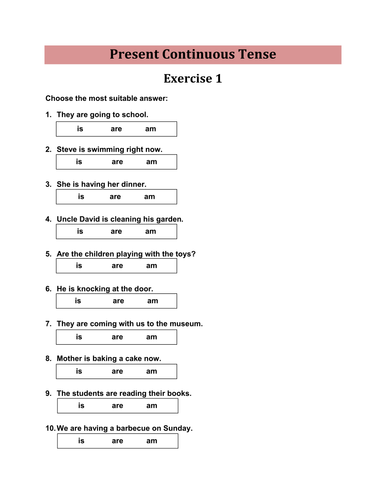 Present Continuous Tense Present Continuous Worksheet Pdf