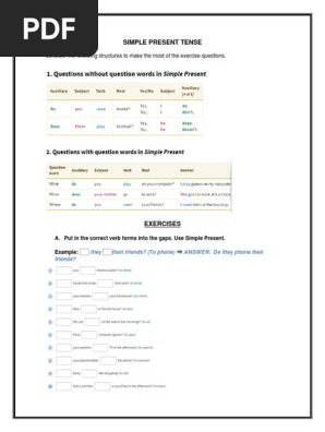 Simple Present Present Simple Exercise Pdf