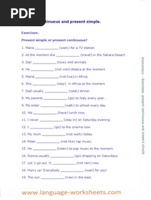 Present Simple And Present Continuous Tense Exercises Pdf Menveledinesl