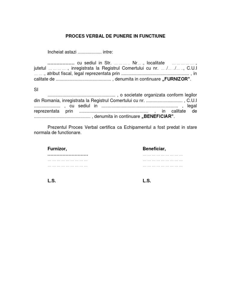 Proces Verbal De Punere In Functiune Mijloace Fixe Fara Contabilitate