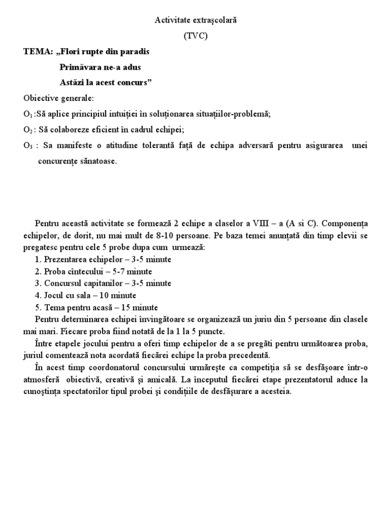 Proiect De Activitate Extracurricular A Pdf Document