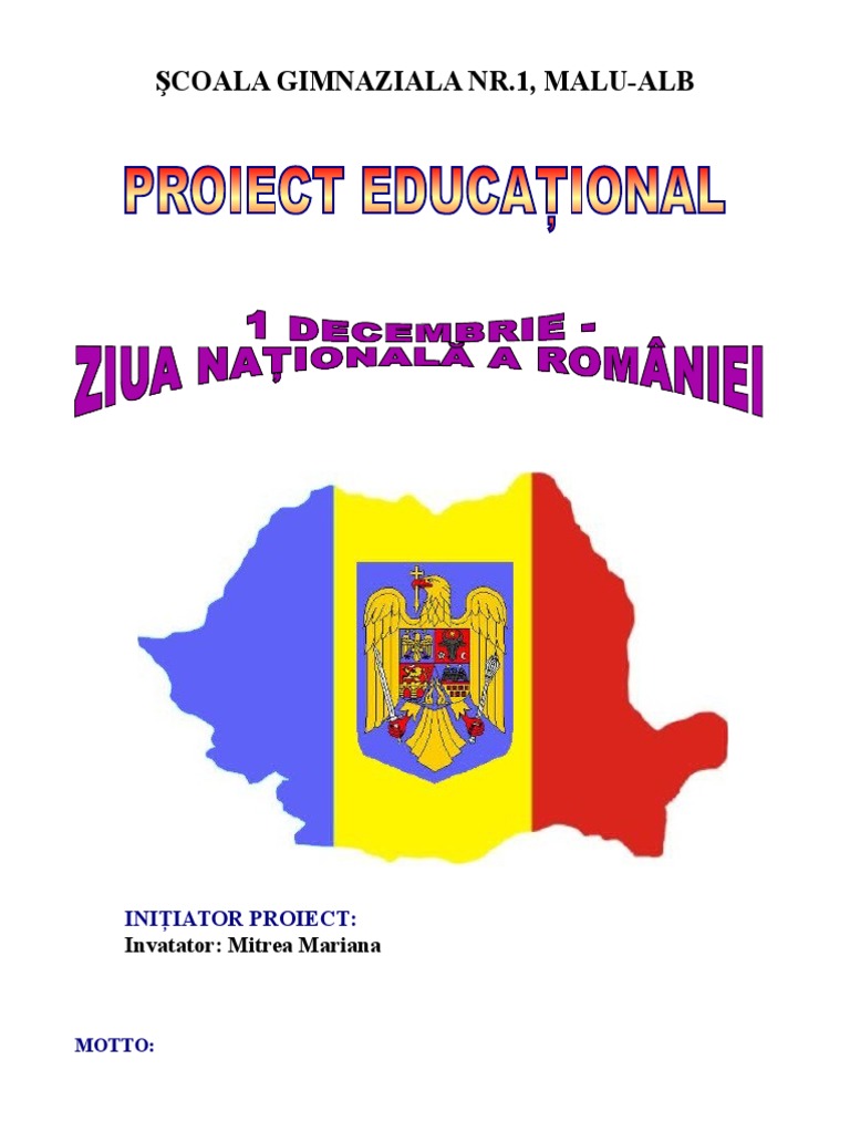 Proiect Educațional 1 Decembrie Ziua Națională A Romaniei