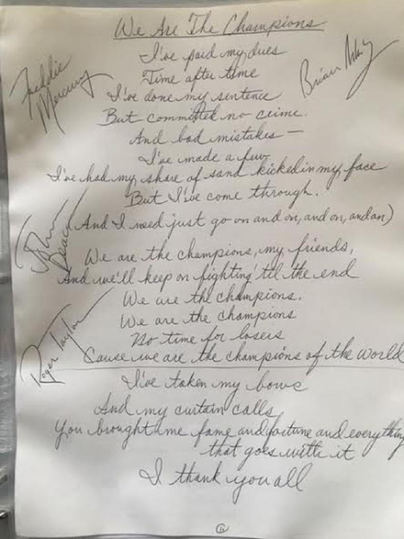 Queen Signed We Are The Champions Lyrics Feb 23 2019 High End Memorabilia In Ca