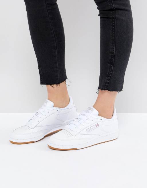 Reebok Classic Club C 85 Trainers In White Leather With Gum Sole Asos